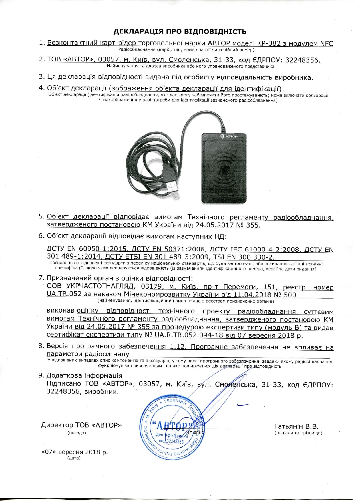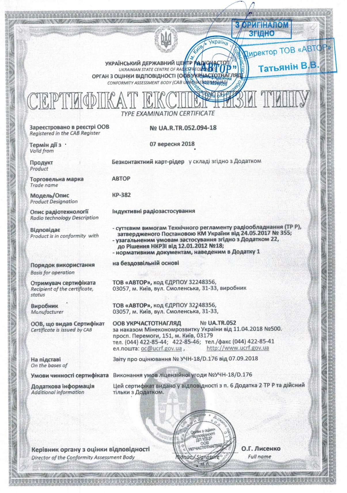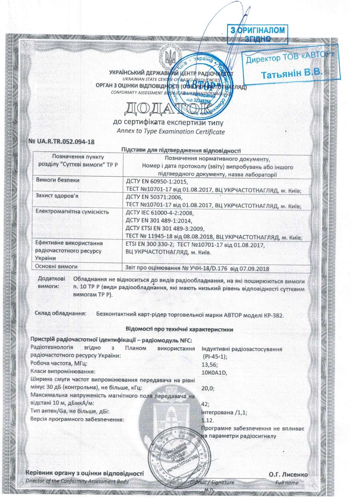 Повна назва: Засіб КЗІ смарт-карта «CryptoCard-337» (експертний висновок ДССЗЗІ України № 04/05/02-1380 від 12.05.2021р., експертний висновок ДССЗЗІ України №04/05/02-1381 від 12.05.2021р.) з ліцензією на програмний продукт «Засоби кваліфікованого електронного підпису «CryptoLibV3» (експертний висновок ДССЗЗІ України №04/03/02-3956 від 21.12.2019р.)